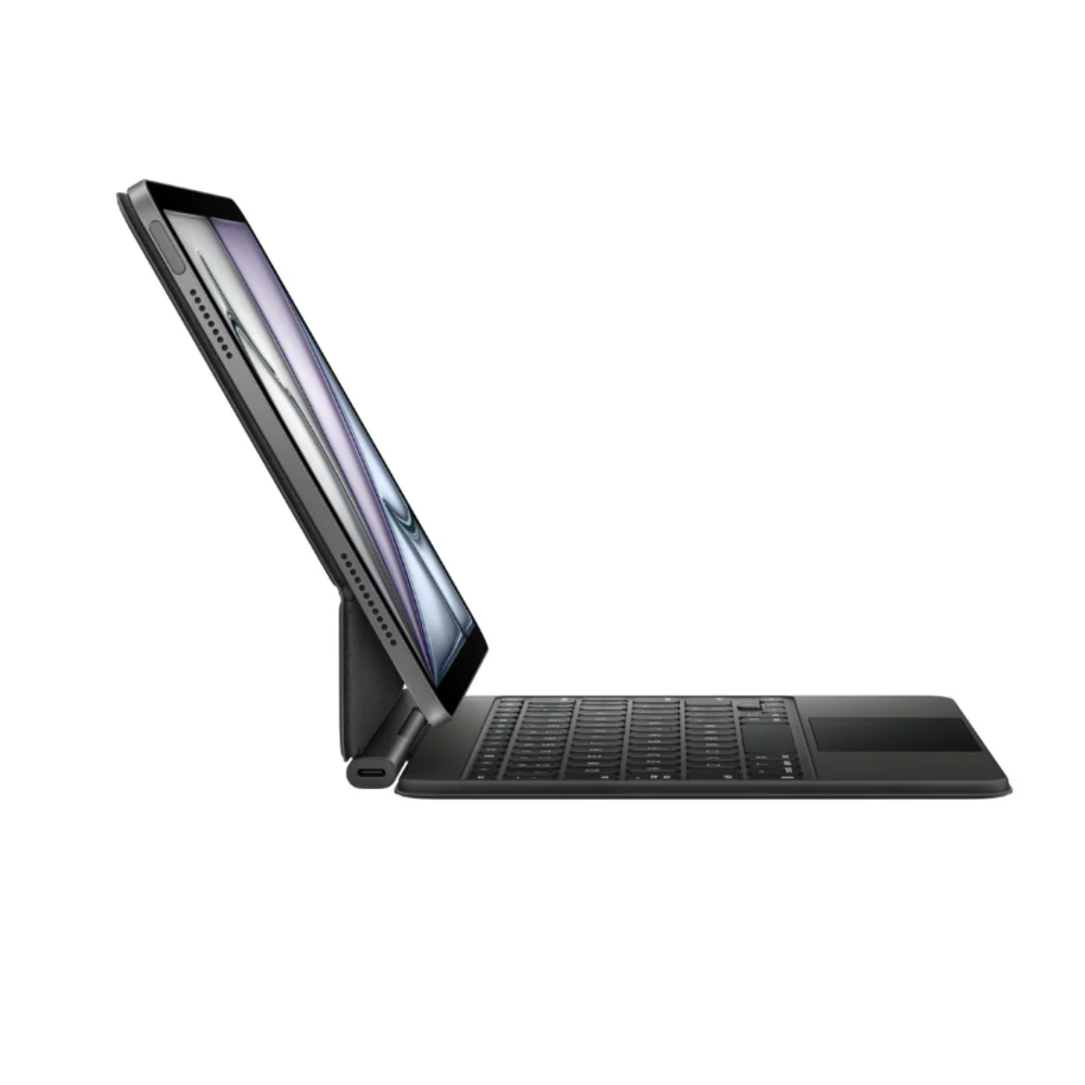 Magic Keyboard for iPad Air delivers an amazing typing experience and features a built-in trackpad to handle tasks with precision, a 14-key function row for quick access to controls like screen brightness and volume, and a USB‑C connector for pass‑through charging. The floating cantilever design smoothly adjusts to multiple viewing angles. And a durable outer cover provides front and back protection, perfect for taking iPad Air anywhere.